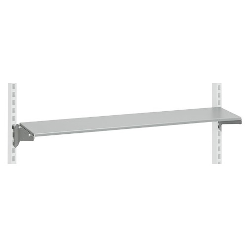 Hyllplan med raskant för verktyg, plastbackar m m. Kan vändas om raskant inte önskas. Monteras på perforerad pelare, rak eller vinklad. Levereras med 2 st konsoler.