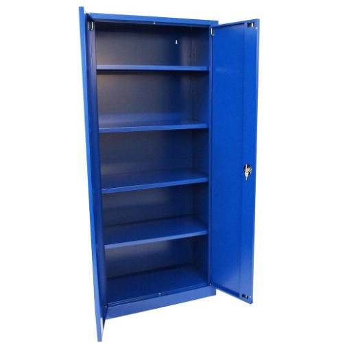 Kraftigt helsvetsat stålskåp med espanjolettlås i dörrarna. 0,7 mm plåttjocklek. Levereras med 4 st hyllplan. Max belastning/hyllplan 60 kg.