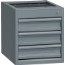 Bänkhurts för montering direkt i bordsskiva med 40 mm tjocklek och 500 mm djup. Lådorna har ett integrerat handtag i bockad stålplåt och kullagerexpansioner med 100% utdragbarhet. Centrallåsning i stommen som låser alla lådor. Lådspärr med individuell låsning på varje låda kan eftermonteras. Maximal belastning är 25 kg fördelad vikt.