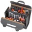 Verktygsväska tillverkad av svart, kraftigt läder och ABS-plast. Delvis utfällbar fram- och baksida. Fram- och baksida med vardera 8 verktygsfickor. Mellanvägg utrustad med CP-7 verktygshållare (Ø 11 mm och Ø 26 mm), för flexibel placering av verktyg på båda sidor. Kraftigt handtag och två portföljlås. Levereras utan verktyg.