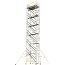 Stabil och lättmonterad trappställning med överlappande stagning för säkrare jobb på högre höjder. Komplett med trappa och plattform varannan meter, två topplattformar, sparklist, justerbara hjul (200 mm) och stödben. Lättmonterad trappa med rejäla avsatser och handledare utan glipor för ökad säkerhet vid upp- och nedstigning. Stor arbetsyta (2,4x1,3 m) på översta plattformen och speciallucka för enkel uppstigning till översta planet. Mjukt formade profiler, låsklor med ergonomiskt två-finger-grepp och färgkodade delar för enklare transport, hantering och montering. Kan enkelt byggas på till önskad höjd med påbyggnadspaket. Välj mellan Baspaket Låg och Baspaket Hög utifrån vilken sluthöjd du vill nå.