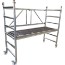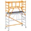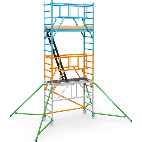 Robust och smidig hantverkarställning. Enkel hantering av ställningsramen och smidiga snäpplås, lås och fäll ihop ställningen med bara ett klick. Utrustad med Ø 125 mm länkhjul med låsningsbroms, kan uppgraderas till höjdjusterbara hjul med hjälp av hjuladapter. Plattformsstorlek 1,80 x 0,60 m. Kan byggas på med påbyggnadspaket. I enlighet med EN 1004, ställningsklass 3 (kan belastas upp till 200 kg/m²).