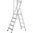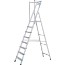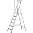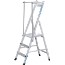 Plattformsstege med fällbart skyddsräcke. 80 mm djupa steg och stor plattform på 400x400 mm med sparklist. Högt räcke på 1000 mm. Robust tack vare förstärkt stöd.