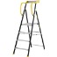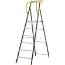 Stabil och säker trappstege med en robust konstruktion. Extra stor plattform (400x400 mm) med dubbelriktat halkskydd och fallskydd på tre sidor för extra säkerhet. Robust hylla i metall för verktyg, maskiner och material. Fällbart räcke som enkelt fälls ihop vid transport. Ytbehandlade sidoprofiler och hylla skyddar mot nedsvärtning.