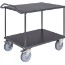 Praktisk og robust bordvogn i 2 lag laminatplater. Pulverlakkert. Ergonomisk håndtak. 2 faste og 2 svingbare hjul med brems 200 mm, hjulspor av termogummi. Leveres umontert.