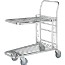 Stackningsbar butiks- och lagervagn där den övre hyllan går att ställa i 3 fasta lägen. Elförzinkad och klarlackad. 4 st 125 mm länkhjul. Levereras omonterad.