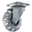Svängbart länkhjul av stål med fyrkantig fästplatta. Hjul av transparent gummi. Angivet värde för max last är beräknat och garanteras ej.