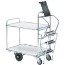 Hylle- og plukkvogn med to hvite hyller, tilpasset standardbrett. Chassis i blankgalvanisert stål. Hyllekanten sørger for at lasten ligger stabilt. Utstyrt med automatisk uttrekkbar stige, noe som gir en plukkehøyde på ca. 2,5 m. Med balansemonterte hjul, to hjul montert i midten under vognen, noe som gjør den lett å styre og svinge selv om lasten er tung. Tre eller fire kulelagrede hjul med grå gummibane, 125 x 32 mm, montert foran og bak på hengeren. To faste styrehjul med svarte gummidekk, 200 x 50 mm, montert i midten av vognen.