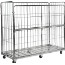 Extra stor rullcontainer med 4 nätsidor. 1 halvhängd grind på ena långsidan, som går att fälla eller ta bort helt. Elförzinkad. Enkel montering utan verktyg. 2 st fasta och 4 st länkhjul 100 mm av nylon. Levereras omonterad.