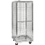 Hög säkerhetscontainer med nätsidor runt om. Låsbar dörr på ena kortsidan, förberedd för hänglås. Elförzinkad. Enkel montering utan verktyg. 2 st fasta och 2 st länkhjul 100 mm av nylon. Levereras omonterad.