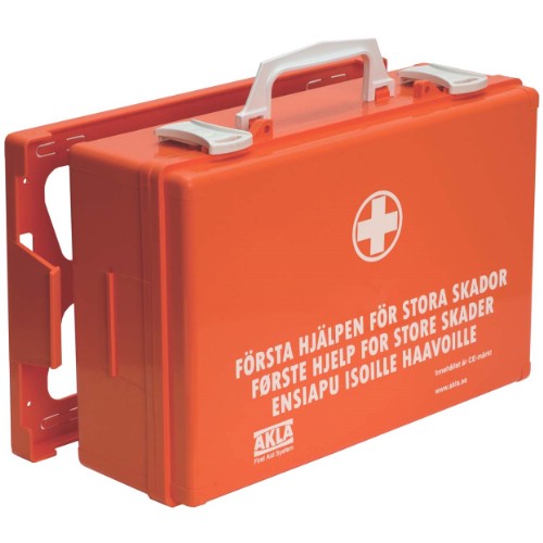 Vägghållare medföljer. Lådan är tillverkad i orange plast för att synas bra.