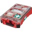 Komplett Packout Första Hjälpen-låda. Tillverkad av slagtåliga polymer för hållbarhet på arbetsplatsen. IP65-klassad för skydd mot väta och damm. 5 löstagbara och monterbara fack som håller produkterna på plats under transport. Rödfärgad för att snabbt kunna hittas vid vid en nödsituation. Ingår i Milwaukees modulära förvaringssystem Packout.