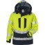 Skaljacka i 2-lagers Gore-Tex Pyrad-material, vind- och vattentät med andasfunktion. Godkänd för svetsning. Smuts- och oljeavvisande. Avtagbar, reglerbar huva. Dragkedja upp i kragen, helt dold under dubbel frontslå. Två bröstfickor med dragkedja och lock med kardborrelås, den ena med D-ring. Två framfickor med dragkedja och lock med kardborrelås. Två innerfickor, varav en med tryckknapp och en med dragkedja. Reglerbart ärmslut. Invändig elastisk mudd. Dragsko i nederkant. Dragkedja i foder för dekal. Metallfri. Vattenpelare > 10.000 mm. ePTFE-membran. Andasfunktion RET 8,33. Tvätt 60°C.