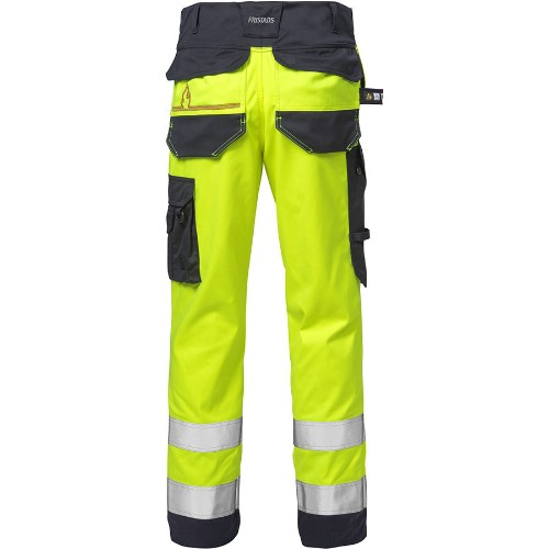 Flamskyddad, varselcertifierad midjebyxa i ett lätt och mjukt stretchmaterial med hög slitstyrka. Inherent flamskydd och multinorm. Godkänd för svetsarbete. Smuts-, olje- och vattenavvisande. 2 framfickor. 2 Cordura-förstärkta bakfickor med lock och dold tryckknapp. Benficka med lock och dold tryckknapp, telefonficka med lock och kardborrelås och D-ring under locket. Cordura-förstärkt tumstocksficka med lock och dold tryckknapp samt knapp och hälla för kniv. Hammarhank. Dubbel förstärkt grensöm. Cordura-förstärkta knäfickor med öppning inifrån. Knäskydden i knäfickorna kan höjdjusteras. Cordura-förstärkning i benslut. Reflexer påsydda med 2-nålssöm. Tvätt 60°C.