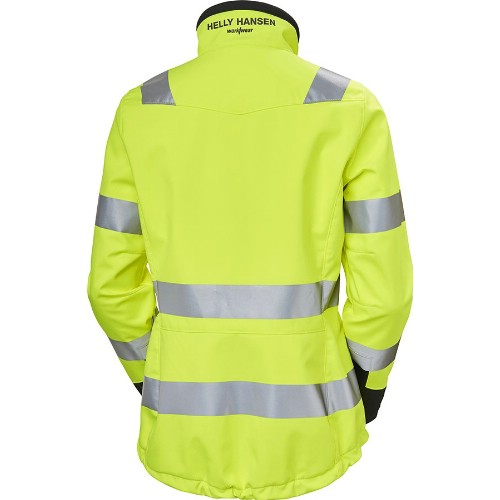 Jacka med kvinnlig passform i softshell-material med membran och vattenavstötande impregnering. Utan axelsömmar. Hög krage med borstad polyester på insidan och hakskydd. YKK-dragkedja framtill. Bröstficka med YKK-dragkedja. Framfickor med YKK-dragkedja och borstat foder. Ögla för ID-kort. Förböjda ärmar för optimal rörlighet. Justerbara muddar. Förlängd rygg. Justerbar fåll med elastisk dragsko. Reflekterande detaljer. 360° reflexer runt bål, ärmar och axlar. Tvätt 40°C