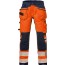 Varselbyxa i dam-modell med stretchpartier i midja, sidor, ok bak och gren. 2 Cordura-förstärkta löst hängande spikfickor, den ena med 3 mindre fickor och verktygshälla och den andra med en extra ficka. 2 sidfickor. D-ring. 2 bakfickor med dragkedja. Dubbel förstärkt grensöm. Hammarhank. Tumstocksficka med verktygsficka, pennficka samt knapp och hälla för kniv. Benficka med telefonficka, ID-kortsficka och ficka med dragkedja. Cordura-förstärkta knäfickor med öppning inifrån. Knäskydden i knäfickorna kan höjdjusteras. Tvätt 60°C.