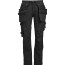 Håndverksbukse for kvinner i 4-veis stretch med partier av slitesterkt vevd stoff i benendene, benlommer og hylsterlommer. Avtakbare hylsterlommer med glidelåsfunksjon og med ekstra rom og forsterket innside, kan stikkes ned i forlommene. Benlomme med tildekket glidelås, ID-kortlomme og telefonlomme. Polstrede lommer på baksiden. Tommestokklomme med knivholder. Hammerhåndtak. Elastisk linning. Forbøyde knær med kneputelommer i slitesterk polyamid med to høydenivåer for innvendig knebeskyttelse. Netting i knefoldene for ventilasjon. Buksebeinet kan forlenges med 5 cm gjennom en fold i benenden. Vask 40 °C.