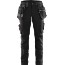 Följsam hantverksbyxa i dampassform med stretchpaneler i 4-vägsstretch framtill, på vaden och i oket samt 2-vägsstretch i grenen. Insticksfickor med stretchpanel. Förstärkta spikfickor med verktygshankar och extra fickor med dragkedja. Förstärkta bakfickor med bälg. Förstärkt tumstocksficka med knivhållare och pennficka. Benficka med bälg, pennficka, Flex-telefonficka och två större fickor varav en med dragkedja. Avtagbar ID-kortsficka. Två hällor i sidorna med knapp för hammarhållare, en hälla med D-ring framtill. Knivhållare med knapp. Breda hällor baktill och i sidorna. Resår i midjan. Gylf med plastblixtlås. Metallknappar. Innerbenssöm med 3-nålsstickning. Knäskyddsfickor förstärkta med Cordura-stretch. Förlängningsmöjlighet i nederkant. Benavslut med förstärkning på baksidan. Reflexdetalj på benen. Tvätt 40°C.