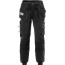 Följsam midjebyxa i sweatshirt-material blandat med Cordura. Verktygsfickor och gylf i vävt material. Linning i vävt material med ribbstickade infällningar och reglerbar dragsko. 2 löst hängande Cordura-förstärkta spikfickor, den ena med 3 mindre fickor och verktygshälla och den andra med extra ficka. 2 framfickor, 2 sidfickor med dragkedja. 2 bakfickor med dragkedja. Cordura-förstärkt tumstocksficka med verktygsficka, pennficka samt knapp och hälla för kniv. Rymlig benficka med tryckknapp, vattentät ficka med dragkedja, telefonficka och ID-kortsficka. Formstickade knäfickor av Cordura med öppning utifrån. Knäskydden i knäfickorna kan höjdjusteras. Hårt utsatta fickor är nitförstärkta. D-ring under löst hängande framficka. Blixtlåsgylf och dubbel förstärkt grensöm. Hammarhank. Ribbstickade muddar med Cordura i benslut.