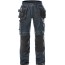 Hantverkarjeans i råtvättad denim med förstärkt gren och dubbelstickad kil. Två löst hängande polyamid- och nitförstärkta spikfickor - den ena med extra ficka, den andra med tre mindre fickor och verktygshällor. Två framfickor, två fodrade bakfickor med extra tygvidd och två hammarhankar. Tumstocksficka, bekvämt placerad över sidsömmen, med lös botten förstärkt med polyamid, knivknapp och -hälla samt pennficka. Telefonficka med lock. Benficka med dragkedja och lös botten. Förböjda ben med knäförstärkning av polyamid och invändig knäficka. Reflexpasspoal i knäveck för bättre synlighet. Nederkant på ben förstärkt med polyamid. Tvätt 60°C.