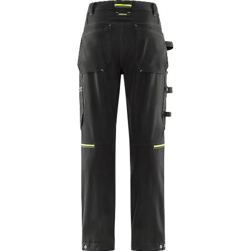 Håndverkerbukse i slitesterkt lettvektsmateriale med 4-veis stretch. En del av Fristads Flex Solution der spikerlommene kjøpes separat og festes med skjulte magnetknapper og trykknapper i linningen. Delvis resirkulert materiale fra tekstilavfall. 2 lommer foran, den ene med innvendig D-ring. 2 Cordura-forsterkede baklommer. Romslig benlomme i Cordura som også kan brukes til linjal, ekstra lomme med glidelås. Lomme til linjal i Cordura med verktøylomme, pennelomme og 2 knapper og knivholder, passer også til dobbelt knivhylster. Hammerhåndtak. Skjult knapp i midjen. Dobbel forsterket grensesøm. Knelommer i cordura med åpning fra innsiden. Kneputene i knelommene er justerbare i høyden. Cordura-forsterkede benender, justerbare med trykknapper. Refleksdetaljer på knærne og bak på bena. PFAS-fri. Vask 60°C.