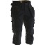 Piratbyxa med rymliga hölsterfickor med extrafack och förstärkt insida. Snedställd benficka med blixtlås, telefonfack, ID-kortsfack och extrafack. Tumstocksficka med knivhållare. Hammarhank. Extra hällor för bältet på de största storlekarna. Knäskyddsfickor med sidopaneler i stretch-Cordura, med två höjdnivåer för knäskydden. Förböjda knän i slitstarkt material. Grenkil i stretch-Cordura. Dragsko i bensluten. Tvätt 60°C.