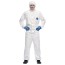 Korttidsoverall i Tyvek försedd med huva som sluter tätt kring ansiktet med hjälp av resår. Resår även i ärm, ben och midja. Blixtlås med klaff, lätt att öppna och stänga med handskar på. Lämplig bl a för asbestsanering, livsmedelshantering, läkemedelsframställning och sprutmålning.