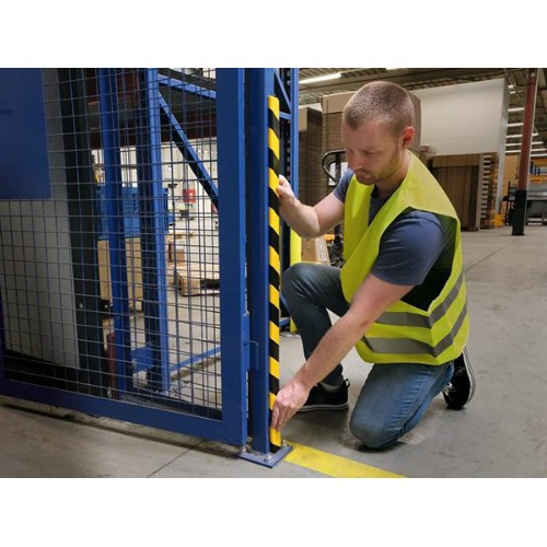 Självhäftande, något böjbart hörnskydd med stötdämpande effekt, designat för inomhusbruk. Tillverkat av polyuretanskum. Passar för industrier, lager, trappor, garage och arbetsfordon. Lätt att installera och kan kapas till önskad längd med hjälp av en vass kniv. Temperaturbeständig från -30°C - +70°C. Färgnyanser enligt ASR A1.3 liknande RAL 1003/9004 (signal gul/signalsvart). Brandtestad i enlighet med DIN EN 13501-1 klass E.