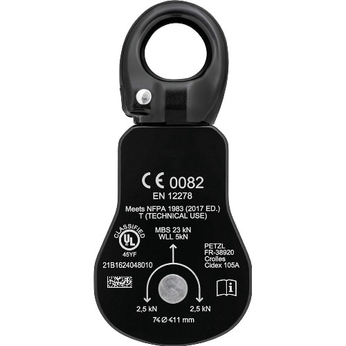 Ultrakompakt och lätt enkelt repblock med svirvel, avsedd för repdiameter 7-11 mm. Optimal effektivitet och enkel hantering. Utformad för enkel installation av hiss- eller lastfördelsningssystem och tyroler för arbete på hög höjd, räddning och trädvård. Den trippelverkande öppningen av den rörliga sidoplattan är snabb och enkel, även vid användning med handskar. Repet kan installeras med enheter redan ansluten till ankaret. Röd markering ger visuell varning när den rörliga sidoplattan är olåst. Sidoplattans speciella design skyddar repbanan. Ø 25 mm skiva monterad på tätade kullager för lång hållbarhet. Svirveln gör att blocket kan orienteras under belastning och möjliggör användning av rep och slingor för att underlätta manövreringen. Tillverkad av aluminium, rostfritt stål och nylon.