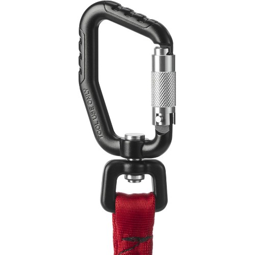 Verktygssäkring med karbinlås som säkerställer att fästanordningen inte lossnar eller faller av. Integrerad svivel som förhindrar vändningar och trassel som möjliggör ökad rörlighet. Färgkodad viktrangordning med enkel identifiering av kapacitet. Kan fästas på alla de flesta typer av verktyg.