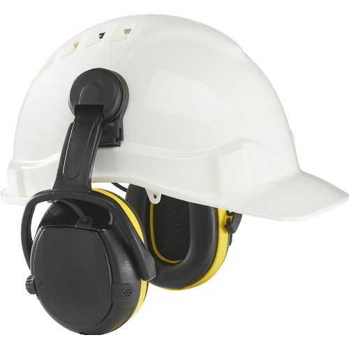Hörselskydd för montering på hjälm, med aktiva medhörningsmikrofoner. Försedd med nivåberoende mikrofoner med aktiv lyssningsfunktion i varje öronkåpa gör att du hör vad som händer i din omgivning medan du fortfarande bär dina hörselskydd. Kommunicera med dina kollegor och hör varningssignaler och andra viktiga ljud utan att kompromissa med din säkerhet och hörsel. Ljudet från högtalarna är begränsat till max 82 dB. Ljudkällor och enheter som musikspelare eller tvåvägsradioapparater kan anslutas via 3,5 mm-ljudingången, avsedd endast för lyssning. Snabb och enkel manövrering med roterande vridreglage. Gummibelagt för bra grepp. Levereras med 2 st 1,5 V AA batterier. Dämpningsvärde SNR 29 dB.