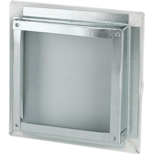 Inspektionslucka bestående av tre delar, ram, lucka och fästbleck. Tillverkad i galvaniserad stålplåt som pulverlackerats i NCS S 0500-N, glans 30. Fästes i ramen med snäpplås t o m storlek 400x400 mm. 500x500 mm och större har ett mejsellås. Ramen fästs i vägg och tak med bifogade klämfästen, lika många per sida, för skivtjocklekar mellan 12,5-25 mm. Luckorna med måtten 500x600 mm och 600x600 mm finns med gångjärn på 600 mm-sidan som standardutförande. Måtten som anges är håltagningsmåtten i väggen.