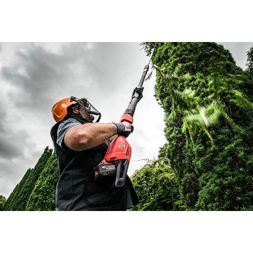 Kraftfull stångsekatör 18 V Li-Ion med kolborstfri motor. Teleskopfunktion med snabblåsning, justerbar mellan 210 och 300 cm. Utvecklad för att uppnå exakta snitt i högre trädområden. Kapar grenar med en diameter upp till 44 mm. Kapar upp till 2000 st grenar Ø 25 mm per laddning med ett 5,5 Ah High Output-batteri. Yttre gummihölje för bättre grepp och kontroll. Ihopfällbar grenkrok för bättre åtkomst eller för att dra ner grenar som fastnar. Verktyg och batteri är skyddade mot överbelastning, överhettning och urladdning. Flexibelt batterisystem, passar samtliga Milwaukee M18-batterier.