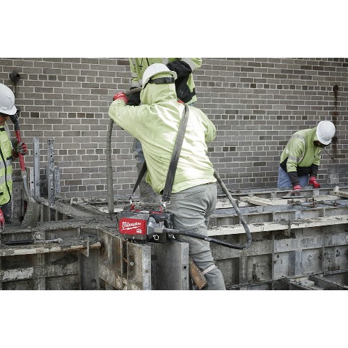 Bärbar betongvibrator med kompakt design som passar vid både stationära och mobila applikationer. MX Fuel-verktyg med 72 V batteri som levererar prestanda som är jämförbar med bensindrivna, nätdrivna och hydrauliska verktyg. Skyddar samtidigt användaren från skadliga gaser, buller, kraftiga vibrationer, snubbelrisker och eliminerar irritationsmoment som motorunderhåll och bensinpåfyllning. Kraft nog för att driva upp till Ø63 mm huvuden med mer än 11200 VPM. Upp till 40 m³ med betong med 1 x MXF XC406-batteri. Startknappen eliminerar repetitiva rörelser. Trådlös fjärrkontroll ger möjlighet att slå på maskinen från upp till 9 meters håll. Modulär design gör det enkelt att ta bort ryggsäcken för arbete på väggar och pelare. Bärhandtag för enkel transport och förflyttning. Systemtillbehör, huvuden och slang finns tillgängliga separat. ONE-KEY-funktion ger säkerhet och verktygspårning och erbjuder ett molnbaserat spårningsnätverk och en lagerhanteringsplattform. Funktionen gör det också möjligt att fjärrstyrt låsa verktyget och att anpassa det för specifika applikationer.