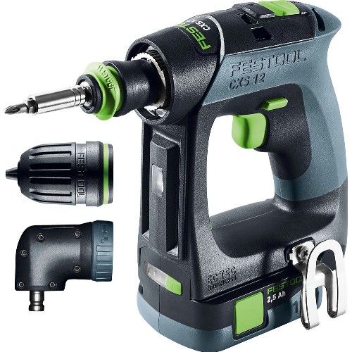 Standardutrustning: 2 st 2,5 Ah Li-Ion batterier BP 12 Li 2,5 C, snabbladdare TCL 6, bältesklämma, snabbchuck FastFix 10 mm, Centrotec verktygschuck WH-CE, Centrotec magnetbitshållare BH 60 CE-Imp, vinkeltillsats AN-XS, bits PZ 2, bitssats BKS SYS3 D5 PZ TX 100 CE och staplingsbar förvaringsväska Systainer SYS3 M 187.