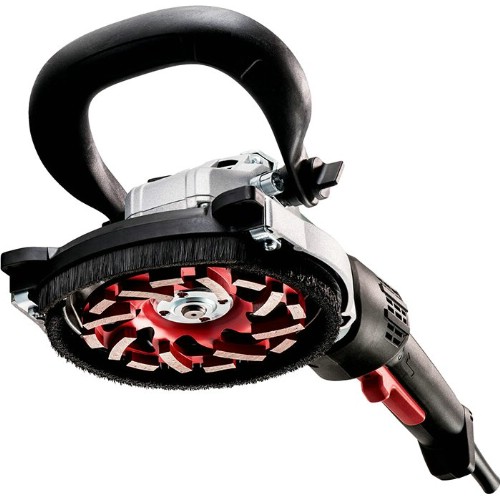 Lätt betongslip med en 1900 W motor för effektiv slipning och borttagning av betong, golvmassa och beläggningar med diamantslipskålar. Högt vridmoment och överlasttålighet. Elektronisk mjukstart. Kantnära arbete tack vare fast monterat segment som kan fällas upp. Bra uppsugningsresultat, fjädrande borstkrans på skyddskåpan som anpassar sig till varje yta och segmenthöjd. Vario-Tacho-Constamatic (VTC) helvågselektronik med inställningsratt för arbete med materialanpassade varvtal som förblir konstanta under belastning. Verktygslöst justerbart bygelhandtag för säker och jämn styrning vid slipning. Skydd mot återstart förhindrar att maskinen startas av misstag efter strömavbrott. Metabo S-automatic säkerhetskoppling, mekanisk urkoppling av drivningen om verktyget blockeras. Bra ergonomi tack vare smalt greppområde. Anslutning för dammutsugning Ø 35/41 mm.