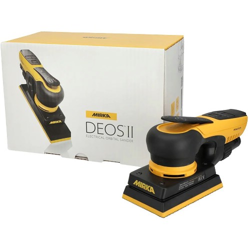 Mirka DEOS II 353 er en elektrisk slipemaskin som er ideell til bruk innen trebearbeiding og dekorativ maling. Den er ideell for dører og vinduer, men også for hjørner, kanter, vanskelig tilgjengelige arbeidsflater og trange rom.
