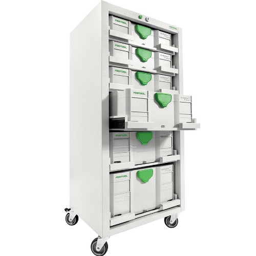 Förvaringsvagn för Festool Systainer och Sortainer. Flyttbar tack vare kullagrade styrhjul. Parkeringsbroms för säker uppställning. 5 st utdragslådor som kan justeras för att passa olika Systainer- och Sortainer-storlekar. Praktisk avlastningsyta med gummibeläggning för verktyg och arbetsstycken. Säkerhetslås som skyddar mot stöld. Robust och stabil konstruktion av stålplåt. Ej för montering i fordon.