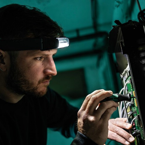 Uppladdningsbar pannlampa som lyser upp hela arbetsområdet. Högeffektiv multi-LED-design med 12 LED-dioder som ger ett jämnt, starkt vitt behagligt ljus både inne och ute. 3 olika ljuslägen mellan 40-400 lumen ger en lystid på upp till 21 timmar. 120°x60° spridningsvinkel. OPTILight-funktion som garanterar optimerat ljus och drifttid med en enkel knapptryckning, ger belysningsstyrka (LUX) som krävs i en typisk arbetssituation. Sensorfunktion, beröringsfri sensorbrytare för på/av. Praktisk att använda även med tjocka handskar. Bekvämt huvudband som enkelt justeras. IP65-klassad och godkänd, damm och vattentät. IK07-klassad, fallsäker från 2 meter. Laddtid 4,5 timmar. Batteriindikator. Levereras med 1,0 m laddkabel USB-A till USB-C.