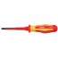 Isolerad skruvmejsel för Philip-spår. Anpassad för arbete under spänning upp till 1000 V. Rund isolerad klinga av härdat vanadinstål. Ergonomiskt tvåkomponentshandtag.