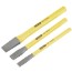 Sats med flatmejslar i 3 delar tillverkade av högkvalitativt kromvanadinstål. Härdad och anlöpt efter exakta specifikationer för extra säkerhet. Hög styrka och beständighet mot urflisning och deformering vid metallarbete. Smidd i ett stycke. Pulverlackad.