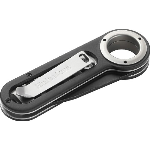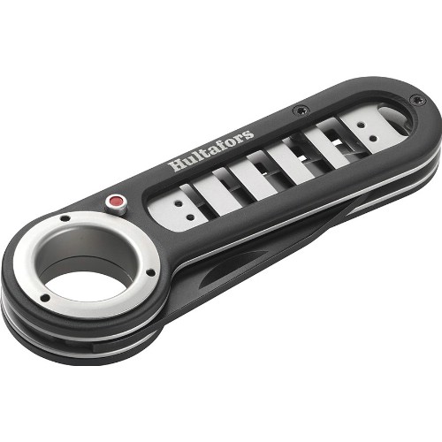 Robust fällkniv i lackerad aluminium, med rostfria detaljer samt lackerat blad i rostfritt knivstål. Kompakt design och med ett stort användningsområde. Knivbladet är 2,8 mm tjockt, härdat till 58-60 HRC. Enkel och säker låsning av bladet med en knapp på sidan av handtaget. Bältesclipet är vändbart och går att montera på båda sidor av handtaget. Kan användas tillsammans med Hultafors tändstål.