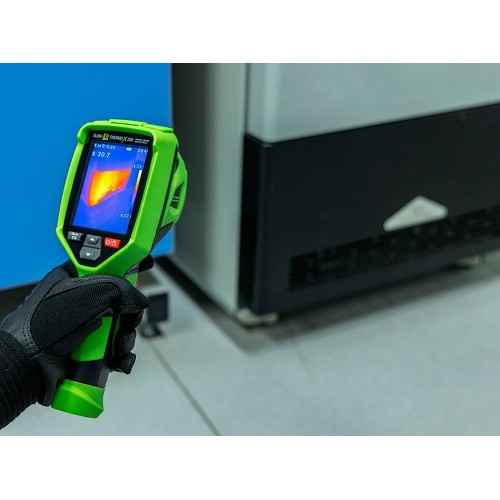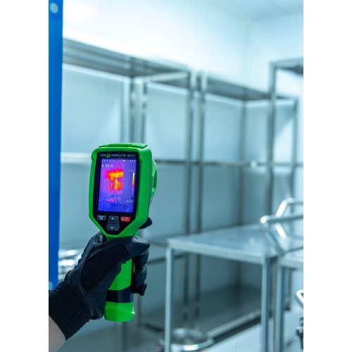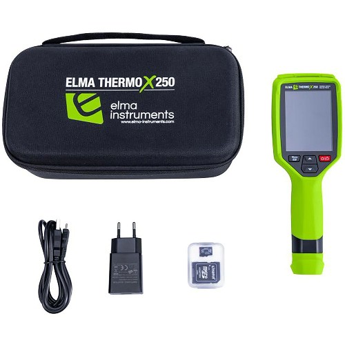 Elma Thermo X250 er et smart og kompakt varmekamera med en oppløsning på 256x192 piksler = 49 152 piksler. Kameraet er superenkelt å bruke med pek-og-skyte-funksjonalitet, fast fokus og uten mange kompliserte innstillinger. Thermo X250 tar et termisk bilde sammen med et visuelt bilde på 2 MP, og lagrer begge bildene på SD-kortet i kameraet. Bildene kan overføres til en datamaskin via en USB-C-kabel, eller ved å sette SD-kortet inn i datamaskinen. En iOS- eller Android-app kan lastes ned gratis, og bildene kan overføres trådløst til en smarttelefon eller et nettbrett via WiFi. Du kan laste ned en brukervennlig analyse- og rapporteringsprogramvare gratis på nettstedet vårt, og med Thermo X250 er det enkelt å dokumentere temperaturrelaterte data på en profesjonell måte - uten den store investeringen og uten å ha mye erfaring med termografiens mysterier. Det innebygde oppladbare Li-ion-batteriet lades via USB-C, lader medfølger. Elma Thermo X250 leveres klar til bruk i en eske med USB Type-C-kabel, lader, 32 GB SD-kort og bruksanvisning.