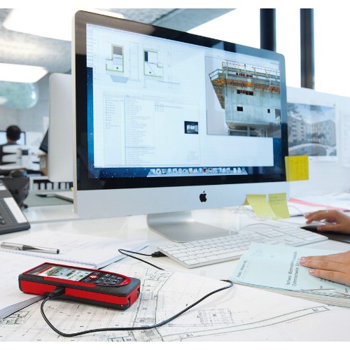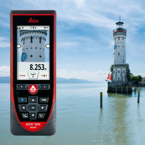 Avståndsmätare med pekskärm och integrerad kamera. Kan mäta med hjälp av bilder som går att ladda ned till en dator med USB-gränssnitt. Skicka mätvärden till olika program med den kostnadsfria appen Leica DISTO. Mäter upp till 200 meter med en noggrannhet på ±1 mm.