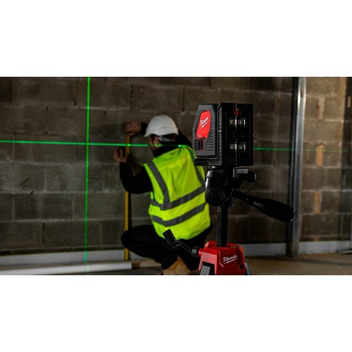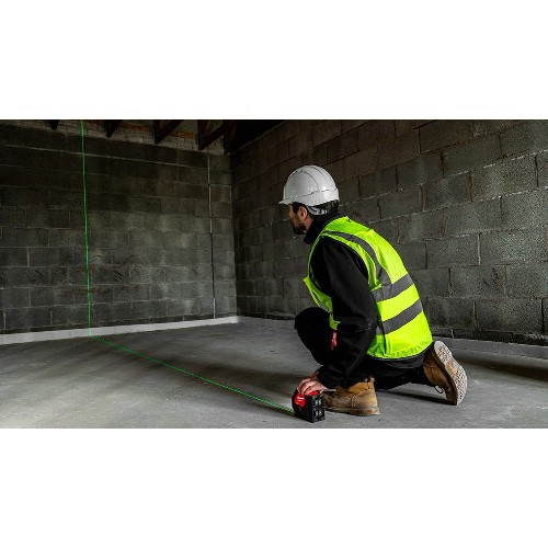 Korslaser med allt-i-ett-funktionalitet med horisontell och vertikal inriktning. Projicerar horisontell linje och vertikal linje. Grön högintensiv laserlinje för optimal synlighet. Med möjligt arbetsintervall på 30 m utan mottagare (50 m med mottagare). 3-läges pendelsystem, med manuellt läge för användning i valfri vinkel, 4° självnivellering och pendellås-läge för att skydda komponenter under transport. Integrerat 360° fäste med kraftfulla magneter baktill, 1/4? stativgänga och upphängningshål, gör det möjligt att fästa lasern på stålreglar, träreglar och stativ. IP54-klassat skydd, klarar fukt och damm samt fall på upp till 1 m. Drivs av 4 st AA-batterier ger över 8 timmars drifttid.