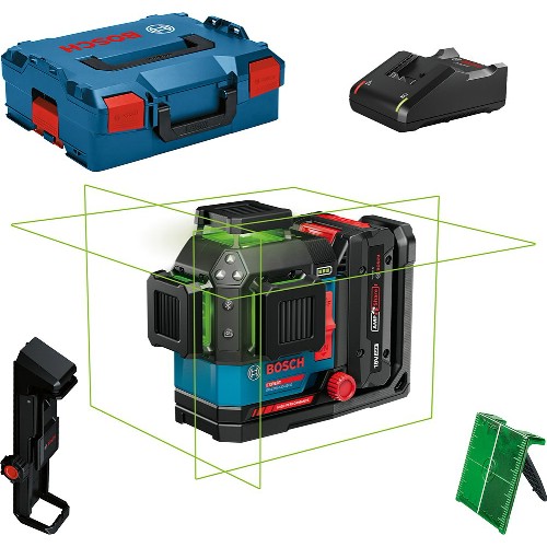 Sirkellaser med grønne laserlinjer for økt synlighet. En del av Bosch Expert 18 V-serien. Projiserer 3x360° klare og tydelige laserlinjer. Rekkevidde på opptil 35 meter uten mottaker og opptil 120 meter med mottaker (ikke inkludert). Slitesterk design med gummiert hus, IP65 støv- og vannsprutbeskyttelse for å tåle tøffe miljøer. Med finjustering av den vertikale linjen uten å miste referansepunktet. Selvnivelleringsområde på opptil +/- 4° på 3 sekunder. Triple Power-funksjon, drives av 18 V eller 12 V Li-Ion-batterier eller 4 x 1,5 V LR14-batterier (C). Opptil 24 timers driftstid i 3-linjers modus, med 18 V 4,0 Ah-batteri. Utstyrt med en Bluetooth-modul som muliggjør trådløs fjernkontroll via smarttelefon sammen med Bosch Levelling Remote App. Batteriindikator. Integrert universalfeste utstyrt med sterke magneter. 1/4" og 5/8" stativgjenger. Kan brukes sammen med lasermottaker LR 7. Kompatibel med batterier og ladere i Bosch Expert 18 V-serien, Bosch Professional 12 V/18 V System og AMPShare Alliance.