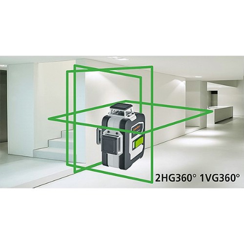 Liten och smidig tredimensionell cirkellaser med gröna laserlinjer med extra hög synlighet. Projicerar en horisontell och två vertikala 360° klara och tydliga laserlinjer, för smidig invägning, utmarkering av räta vinklar och överföringar. Räckvidd på upp till 30 m utan mottagare och upp till 60 m med mottagare (tillbehör). Självnivellerande upp till 3°. Out-Off-Level, optiska signaler indikerar när enheten ligger utanför nivelleringsområdet. Manuell lutningsfunktion. Lasern kan fjärrstyras från mobil enhet via Bluetooth och Laserliner Commander-appen som laddas ner från App Store eller Google Play. Drivs av medföljande 7,4 V Li-Ion batteri och laddas via USB-C-gränssnitt. Lång driftstid, upp till 17 h med en laserlinje och upp till 9 h med tre laserlinjer. Batteriindikator. Pendellås som skyddar lasern under transport. 1/4" och 5/8" stativgänga.