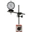 Sett med magnetstativ og måleur. Magnetstativ med finjustering, V-spor og M8 gjenger, avtagbar magnetfot med magnetkraft på 80 kg, spenn for montering av øre eller Ø 8 mm monteringshull. Måler med metallhus og herdet og slipt Ø 8 mm H6 klemmeaksel. Hjulet kan snus for å tilbakestille ved hjelp av den ytre ringen. 2 justerbare toleransemerker. Med hempe på baksiden. DIN 878 standard.