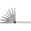 Fjäderhårda stålblad/slitsmått i konisk form med tydlig märkning av tjocklek. Förnicklad hållare med ledad nit som är låsbar.