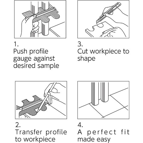 Profilmall för överföring och kopiering av profiler med böjda och oregelbundna linjer. Med runda stift av rostfritt stål.